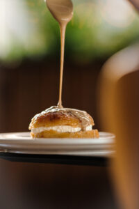 Eniştem Lokantası’nın tatlı menüsünde öne çıkan lezzetler arasında coğrafi işaretli kabak tatlısı ve manda kaymağıyla servis edilen Mayın Tatlısı yer alıyor. Hakan Fedakar, bu özel tatlıyı, “Mayın Tatlısı, aslında Kemalpaşa Tatlısı’nın farklı bir yorumu. Biz onu manda kaymağı, tahin ve cevizle servis ediyoruz. 2021’den bu yana Aydın’da bu tatlıyı sunan tek lokantayız.” diyerek özetliyor.